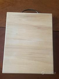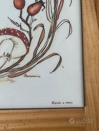 Tagliere in legno e ceramica dipinto a mano, mai usato. Misure 29,5c23,5x3 cm