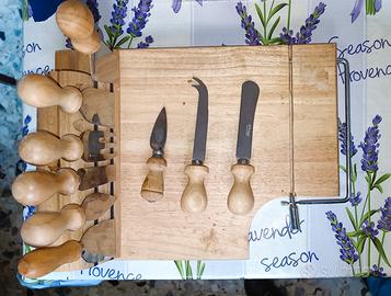 Tagliere in legno formaggi con set coltelli inox