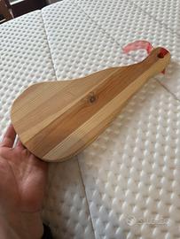 Vendo tagliere in legno massello con un bellissimo disegno realizzato a mano con la tecnica del pirografo. Il motivo raffigura uno scoiattolo che tiene una ghianda, donando al pezzo un tocco rustico e artigianale.