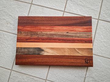 Tagliere in legno massello, utilizzabile anche come vassoio o portata.