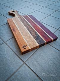 Tagliere in legno massello, utilizzabile anche come vassoio o portata.