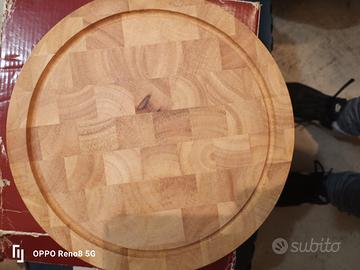 tagliere tondo in legno massello con scomparto coltellini per formaggi. dimensioni 24*24*4cm. nuovo mai usato. ritiro a mano Milano Famagosta completo di scatola ma leggermente usurata