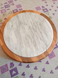 In legno massello lavorato, due dischi sovrapposti scorrevoli diam,30cm. , disco sup. con marmo e disco inf. con cassettiera porta utensili in acciaio inox, spessore chiuso 4,5 cm.