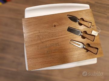 Tagliere per formaggi con tre utensili. Condizione: nuovo DA RITIRARE PRESSO: Arredare Casa Srls Corso Martiri d'Ungheria n. 35/37 - S. Maria C.V. (CE) 81055 Tel. 0823 844694 Cell. 347 3351522 Email. nardiellocasa@gmail.com ARTICOLO IDONEO PER LA SPEDIZIONE (DA CONCORDARE ED A CARICO DELL'ACQUIRENTE)