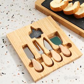 Tagliere per Formaggi in Bambù e Ardesia con Cassetto Estraibile, 4 Posate e Ciotolina in Porcellana 🧀🍷