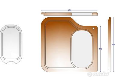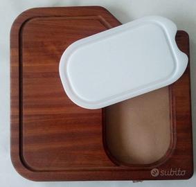 tagliere in legno massello iroko con inserto in polietilene bianco per lavelli Franke modello "Acquario". Nuovo. Fatto in italia.