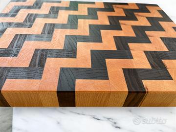 Tagliere in faggio e noce lavorato a mano e trattato con olio e cera 100% naturali.