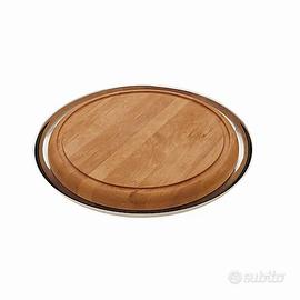 Vassoio con cupola e tagliere in legno di ontano. Prezioso set coordinato per formaggi, elegante da portare in tavola e pratico da riporre in frigorifero. Piatto Inox per formaggi o multiuso con tagliere in legno rimovibile (ø cm 34,5) cupola di protezione a norma UE in acciaio Inox.