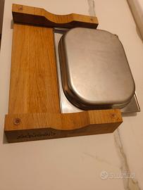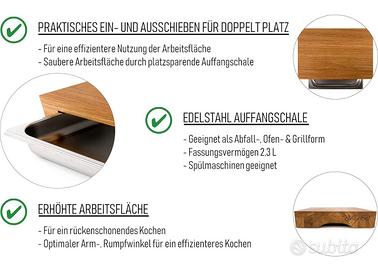 tagliere in legno di quercia professionale in legno di quercia oliato con vaschetta raccogli gocce in acciaio inox, dimensioni: 43 x 29 x 7 cm