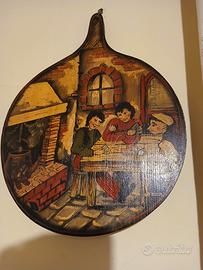 tagliere rotondo in legno dipinto a mana