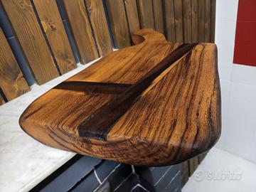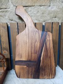 TAGLIERE ricavato da massello di Pregiatissimo ROVERE - BICENTENARIO!! CON INTARSI IN NOCE 530 x 285 mm x H45 mm