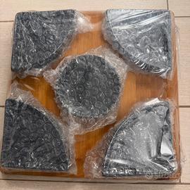 set da portata per antipasti della linea "Black Menu", composto da piatti in porcellana su una base in bambù
