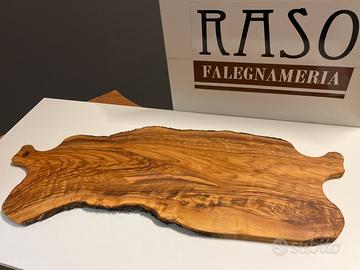 Lavorazione in legno di olivo fatta a mano con incantevoli venature,particolare la sua corteccia,finiture in olio alimentare.Dimensioni (lungh90xlargh24x2,3cm)