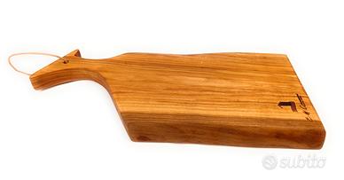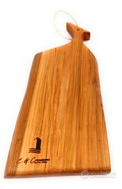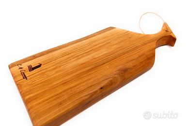 Ricavato da legno massello di ciliegio,lavorato artigianalmente e rifinito con una miscela di olio minerale e cera d'api certificati per uso alimentare, che creano una finitura resistente e duratura.