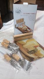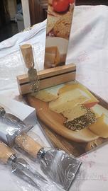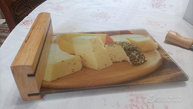 Mai usato in scatola originale perfetta. il tagliere in vetro facilmente lavabile e igienico. i quattro coltelli in acciaio si sostengono sul supporto magnetico in legno del tagliere. misura 25 cm. x 18 cm.