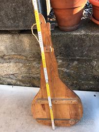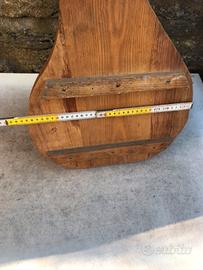 Bellissimo e introvabile tagliere vintage pubblicitario della Daniel marchiato a fuoco Doc di San Daniele a forma di prosciutto con scolatoio per taglio bistecca alla fiorentina. Misure 80 cm di altezza per 36 cm spessore 3 cm
