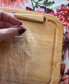 Vendo tagliere vintage originale olandese, con piastrella in ceramica e coltello per formaggio. Mai utilizzato purtoppo la pellicola trasparente si è un po’ rotta. Misura 32x23 cm
