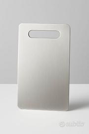 Realizzati artigianalmente in acciaio inox 304L certificato per uso alimentare, con finitura satinata antigraffio, questi taglieri sono pensati per durare nel tempo e resistere anche agli utilizzi più intensivi in cucina.