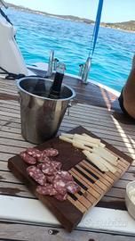 Finitura adatta agli alimenti: i taglieri vengono immersi in olio minerale di vasellina per uso alimentare e trattamento finale a cera d’api per una maggiora protezione all’acqua.