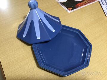 Vendo tajine colore blu con ornamento azzurro come si vede nelle foto, con coperchio, ideale per cotture al vapore. Nuova, senza difetti.