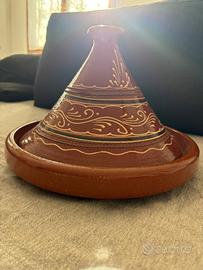 Tajine marocchina in terracotta dipinta a mano.