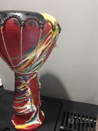 Tamburo in terracotta colore rosso e sfumature con pelle parte sovrastante