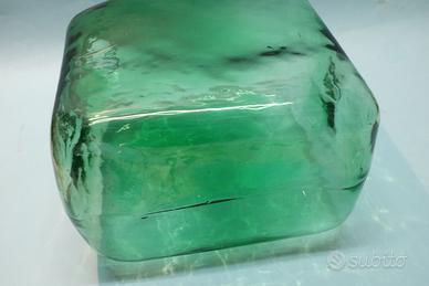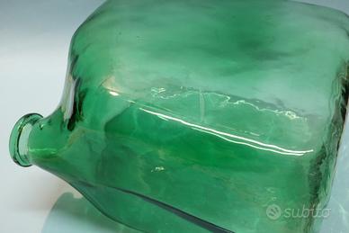 Contenitore vaso vintage, in vetro verde di Empoli, nella particolare e rarissima forma di tanica.