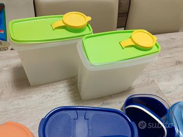 Vendo per inutilizzo nell'insieme o singolarmente per pezzo, vari utensili TAPPERWARE nuovi mai usati tra cui, vari contenitori per legumi o pasta ermetici, dosaformaggio, 2 aspira aria bottiglie vino, colapasta, tritacipolla, tritatutto manuale, schiacciaaglio, stendipasta, vari recipienti ermetici ecc. ( tutto in foto principale). Vendo tutto insieme euro 90.00, oppure singolarmente il prezzo è da concordare se si è interessati.