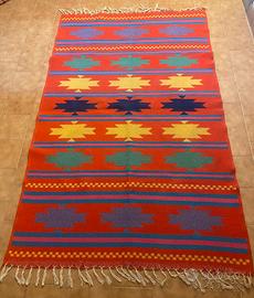 -Tappeto rosso fanatasia in stoffa misure 124 x 200 40€.