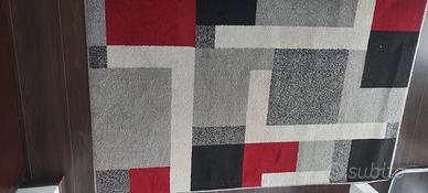 - tappeto a quadri e rettangoli rosso, grigio, nero e bianco