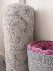 Tappeti da salotto in buono stato di buona marca, colore viola e bianco-grigio con disegni. Compreso un tappetino blu per bambino