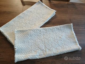 Set di tre tappeti artigianato sardo in ottime condizioni. Due tappeti misurano 120 x 62 e uno 140 x 62. Le misure sono comprensive di frangia.