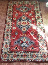 5- Questo è un bel tappeto, mà è fatto con le macchine, sfondo rosso, in Lana, Cotone, 175x103 cm, perfetto.