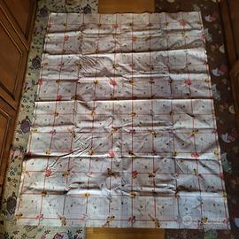 Tappeti più tende da salotto più tovaglia da tavolo.