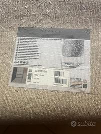Tappeto marchio ‘ABC Italia’, geometrico (colori presenti: avorio/grigio/blu/acquamarina/lime), misura 190x133, adatto anche a riscaldamento a pavimento.