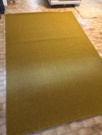 Tappeto 2mx3m mai usato, pelo corto tipo moquette, screziato, tonalità: senape, verde e marrone.