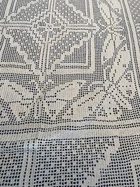 Tappeto all uncinetto di cotone, copritavolo, per tavolo rotondo o quadrato. Realizzato interamente a mano e mai usato.