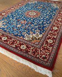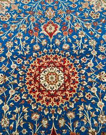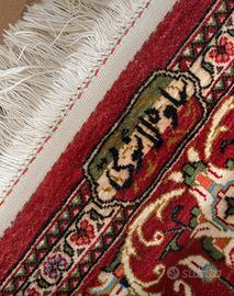 Bellissimo tappeto in condizioni come nuovo lavato e “sistemato” nel 2022 da professionista esperto in tappeti (come da foto) e mai più utilizzato. Dimensioni 110x170, tutto rinforzato sui lati più lunghi con protezione in pelle in modo tale da assicurargli la stabilità. Colori bellissimi. Con firma come da foto.
