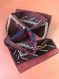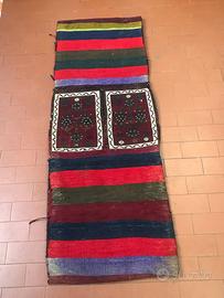 Cosiddetti oggetti d'uso che oggi sono sempre più ricercati .Trattasi di sacche/selle khorjin o saddle bag da cavalcatura dell'area di Bergama (Turchia) e si presenta in uno stato di conservazione molto buono nonostante siano state sottoposte all'uso per molti anni. Completa, lavata e sanificata. Sul fronte la tecnica di lavorazione è l'annodato tipico dei tappeti, il retro è naturalmente un kilim. Il mercato è in rirardo quindi si possono avere ancora con questi prezzi competitivi.....Posso naturalmente spedire