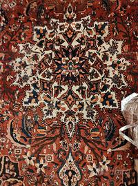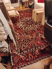 causa trasloco in ambiente più piccolo vendo a malincuore splendido tappeto tappeto bakhtiari del primi del Novecento in lana 330 * 208 circa le dimensioni, annodato manualmente con grande molteplicità al centimetro quadro, colori perfetti naturali in rapporto all'età, valore di mercato quando lo acquistai 4500 euro oggi svendo a 800 che è il prezzo di riacquisto offerto da un venditore in permuta per un altro tappeto, quindi sicuramente una stima al ribasso, possibilità di trasporto in Torino e comuni limitrofi, in Piemonte con 35 euro