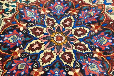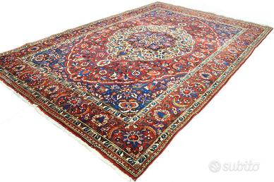 Imponente e ricco di carattere, questo tappeto persiano Bakhtiari, annodato a mano, è un autentico esempio della tradizione tessile delle tribù del sud-ovest dell’Iran. Il suo raffinato disegno floreale, distribuito con equilibrio su tutta la superficie, dona personalità e calore ad ambienti ampi come salotti, sale da pranzo o ingressi scenografici.
