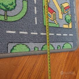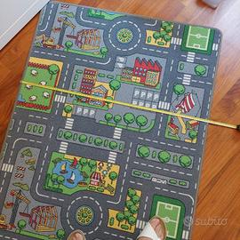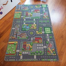 Tappeto bambini double-face con lato città e lato campagna. Piccoli fili tiratisolo da un lato come visibile dalle foto. Misure in foto. Ritro a mano preso domicilio a Milano zona Bonola.