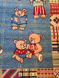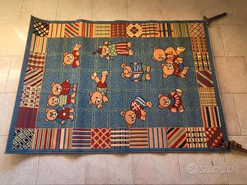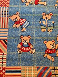 Tappeto per arredo cameretta bambino/a a fantasia con orsetti. Tappeto mai usato con etichetta intatta, come nuovo, in perfette condizioni. Tappeto multicolore con orsetti, a fantasia. Misure : lunghezza 160 cm , larghezza 116 cm. Ideale per far giocare i vostri bambini in sicurezza, Comodo, confortevole, facile da usare e riutilizzare. Si arrotola in un attimo e si distende nel medesimo tempo. Soluzione efficace contro la polvere. Ottima soluzione per far divertire i vostri bambini con i loro giochi preferiti. Tessuto sintetico. Per maggiori informazioni contattare il 3349006679.