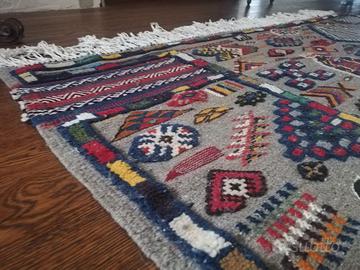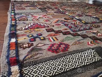 Tappeto berbero marocchino, lana di cammello con inserti in lana di montone. Interamente tessuto a annodato a mano, frange solo da una parte come da tradizione berbera.