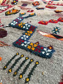 Lan di cammello e pecora (morbida e calda al tatto), tintira a colori naturali con colori vivaci e simboli decorativi tipici della tradizione del Rif.