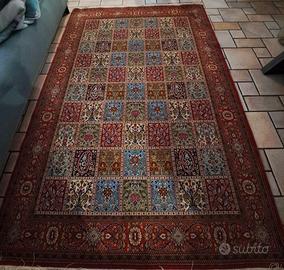 Tappeto classico Bakhtiari, una tipologia di tappeto persiano molto apprezzata per la sua robustezza e per il caratteristico disegno "a pannelli" o "a giardino" (chiamato Khesti).