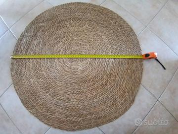 Tappeto impagliato circolare, particolare se adattato sotto tavolini o eventualmente anche sotto un bel vaso per far appunto accentuare la particolarità. dimensioni 80x80