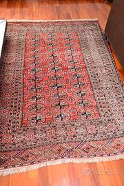 I tappeti di tipo bukhara sono probabilmente i più noti tra i tappeti orientali. La loro è una storia curiosa, che ci dice molto di come i tappeti tessuti a mano si siano diffusi in Asia e poi in Europa. Oggi si producono tappeti bukhara in diverse regioni del mondo, mantenendo inalterato lo stile che ha reso celebri questi manufatti di grande prestigio. Tappeto ben conservato e comperato in una asta Sothesby. Con fattura comprovante l'acquisto, i tappeti sono due , uno circa 130x180 e il secondo circa 140x165 frange escluse