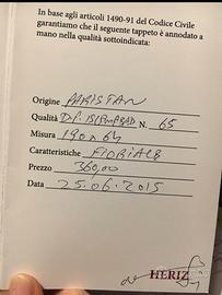 Tappeto vintage con certificato colori principali beige e rosso