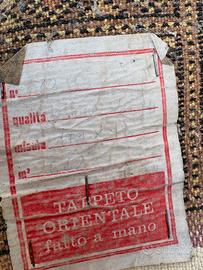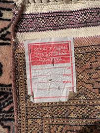 Anni '60,Tappeto Bukhara autentico, annodato a mano con maestria in Pakistan. Con le sue dimensioni di 171 x 122 cm, è perfetto per arricchire con un tocco di classe un salotto, una camera da letto o uno studio.Il tappeto presenta i caratteristici motivi geometrici a "gül" (zampa di elefante), iconici dello stile Bukhara. La combinazione di colori caldi e profondi, con accenti dorati e rosati su un fondo scuro, conferisce un'atmosfera accogliente e raffinata.Realizzato in lana pregiata, morbida al tatto e resistente nel tempo, che offre una sensazione di lusso e comfort sotto i piedi. Ogni nodo è stato realizzato a mano con cura e precisione, garantendo l'autenticità e l'unicità di questo pezzo. Etichetta originale: Il tappeto conserva l'etichetta originale che ne attesta la provenienza ("Bukhara Pakistan") e le dimensioni, come mostrato nelle foto. Sull'etichetta del tappeto, sebbene la scrittura a penna sia un po' sbiadita dal tempo, si riescono a leggere queste informazioni: • n°: 912 numero di serie • qualità: Bukhara Pakistan (o "Bokhara"). Si riferisce allo stile del disegno, tipico con i classici motivi a "zampa di elefante" (gül). • misura: 171 \times 122 (centimetri). • m^2: 2,08 (la superficie totale del tappeto). Il tappeto è in buone condizioni generali, ben conservato e pronto per essere inserito in un nuovo ambiente d'arredo. Le frange sono integre e la lana mantiene la sua lucentezza naturale.